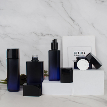 Este conjunto de botellas de vidrio tiene un diseño simple pero exquisito, que incluye botellas y latas de diferentes especificaciones. # conjunto de cuidado de la piel de vidrio