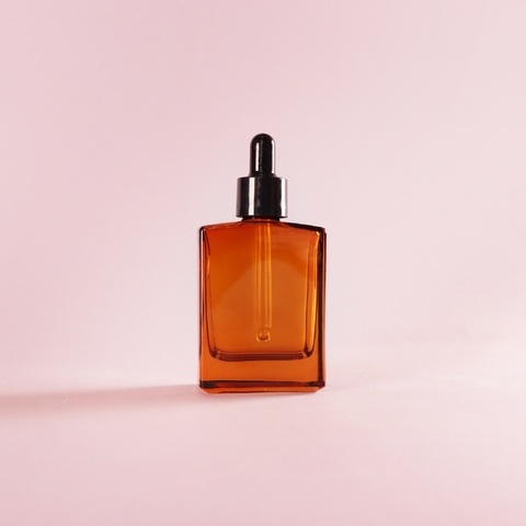 Botella de Vidrio Ámbar para Cuidado DE LA Piel, Envase Plano de Suero Facial, Pipeta Cuentagotas, Aceite Esencial, 30ml